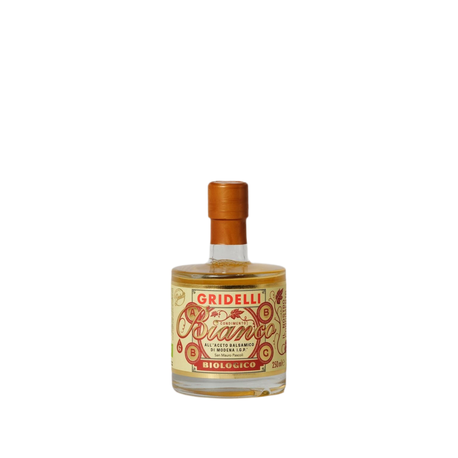 Denne økologiske hvide balsamico er fremstillet af grønne druer fra det solrige Emilia-Romagna. I modsætning til traditionel balsamico er denne variant ikke lagret, hvilket giver en intens og frugtig smag med en frisk syrlighed.