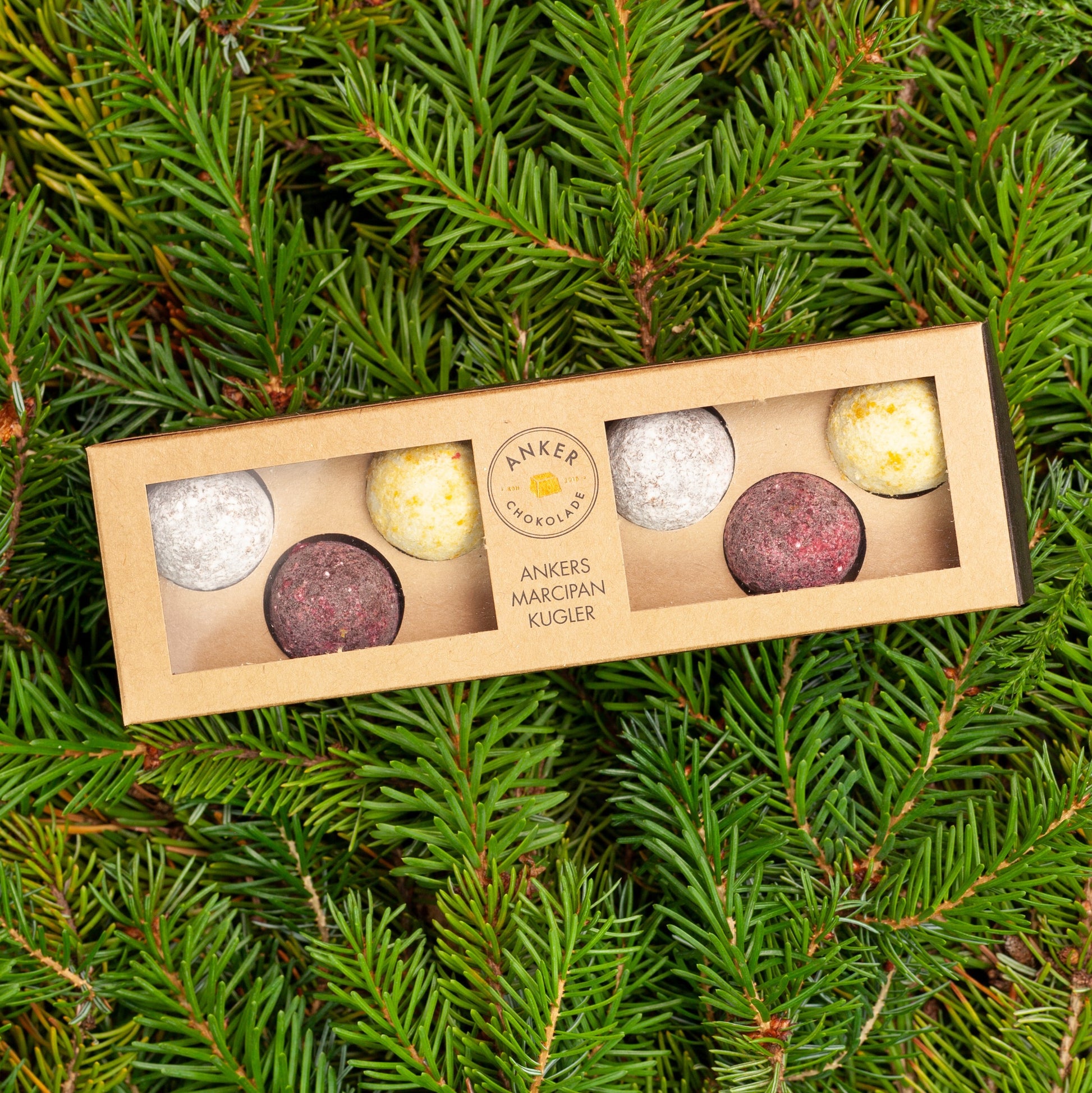 Ankers Marcipankugler er julens elegante små fristelser – håndlavet med sans for smag, kvalitet og æstetik. Hver kugle består af blød økologisk marcipan omsluttet af et lag mørk chokolade, og kommer i tre raffinerede smagsvarianter, der tilsammen forener klassisk tradition med moderne finesse: