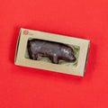 - Beskrivelse: Hel marcipangris overtrukket med et tykt lag Ecuador 70% mørk chokolade