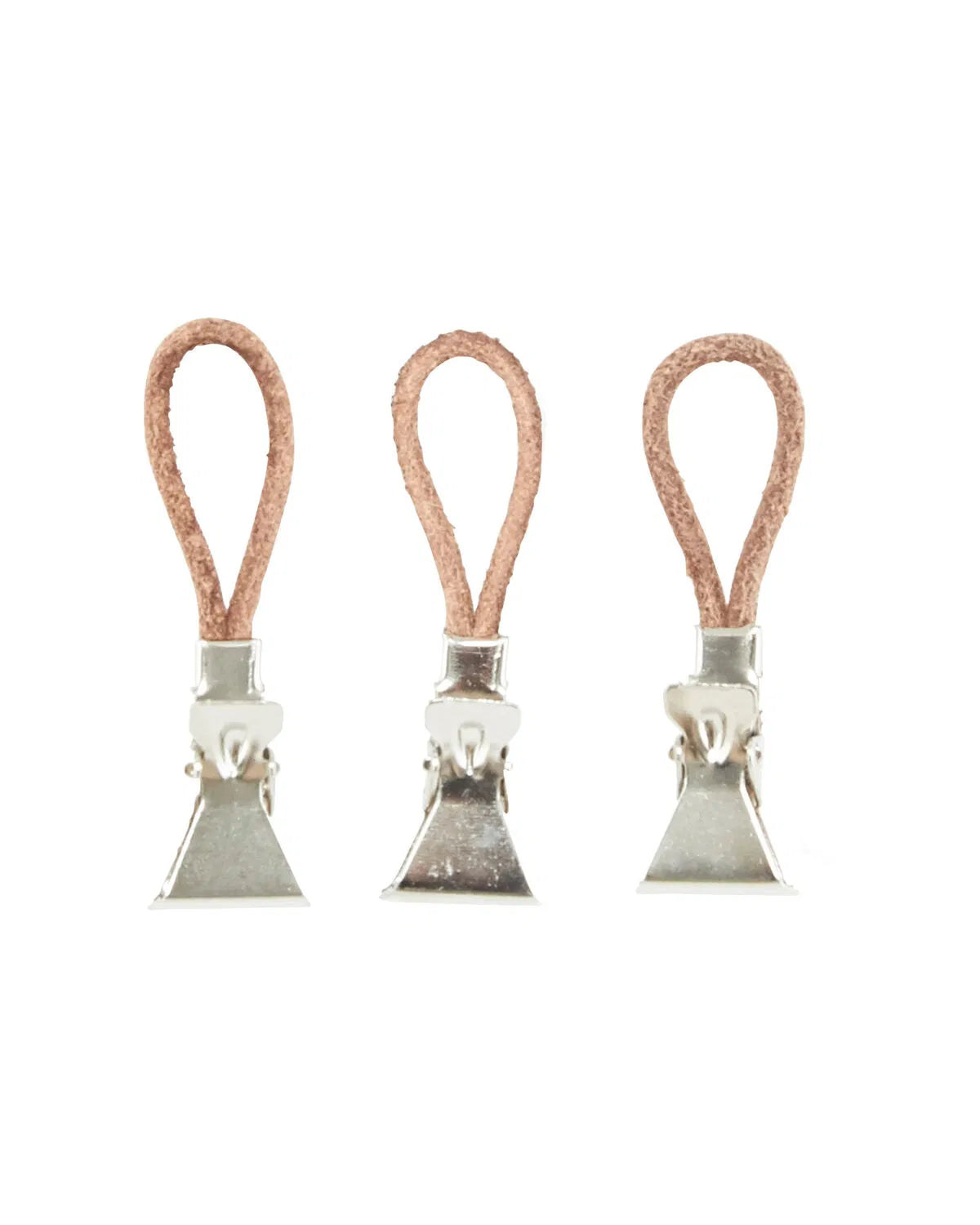 Pakke med 10 håndklædeclips fra Meraki i metal og læder. Perfekt hvis håndklæder mangler løkke eller har for små løkker. Praktisk, elegant og nem løsning til badeværelset.