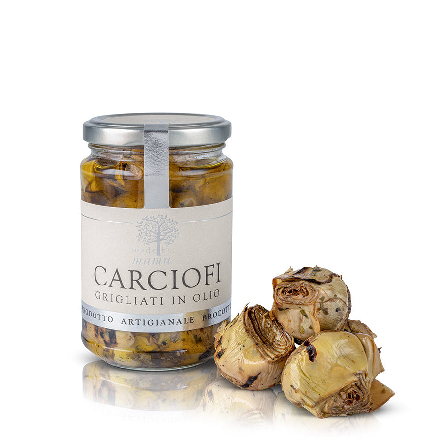 Made by Mamas grillede artiskokker er en ægte italiensk delikatesse til det kvalitetsbevidste køkken. Artiskokkerne grilles i hånden på klassisk grill, hvilket giver en let ristet smag og bevarer det naturlige bid og strukturen.