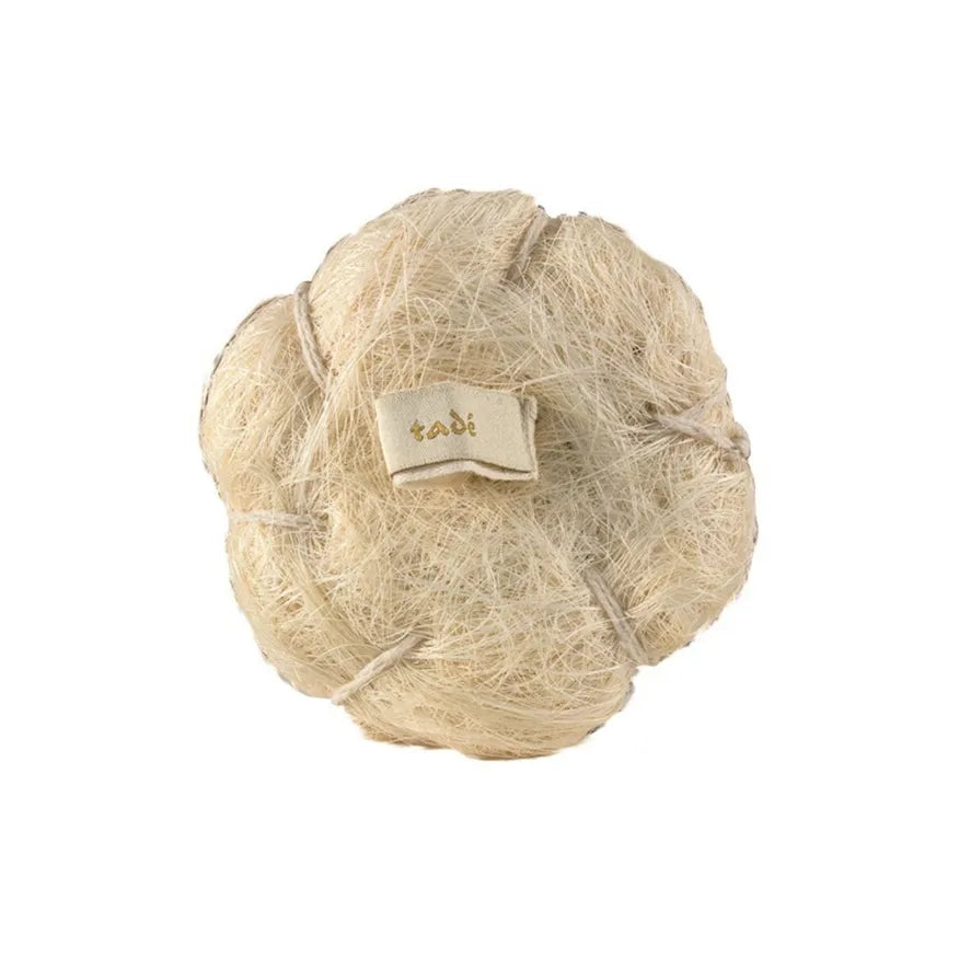 Sisalbolden her er fremstillet af sammenflettede, fleksible plantefibre og fungerer som en naturlig "shower puff". Den giver en mild massage og hjælper med at stimulere huden og gøre den blød og jævn. Bruges i brusebadet med sæbe og energiske, cirkulære bevægelser over kroppen.