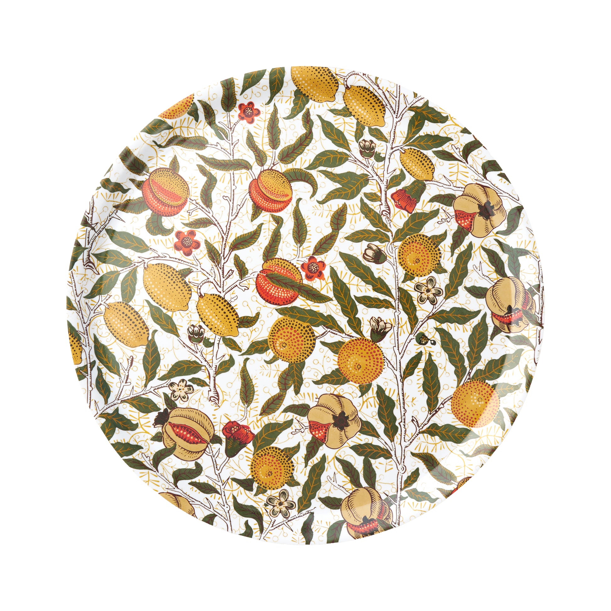 Den runde bakke Golden Lily fra Klippan Yllefabrik er en elegant og funktionel bakke fremstillet i lamineret birkefiner. Med et smukt og detaljeret mønster designet af William Morris bringer denne bakke naturens organiske former og æstetik ind i dit hjem.