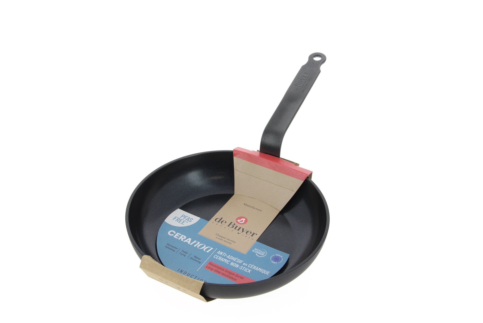 de Buyer Ceranoa er en moderne og miljøbevidst stegepande med sort keramisk non-stick belægning, der kombinerer høj ydeevne med enkel rengøring og elegant design. Panden er tilgængelig i flere størrelser og er ideel til både daglig brug og mere krævende madlavning.
