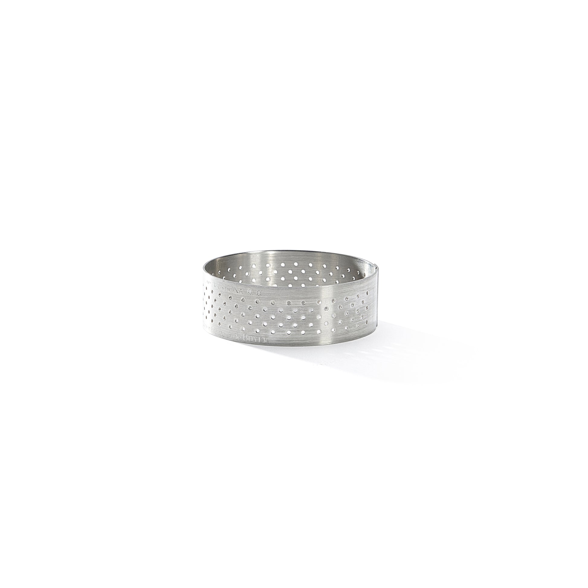 Rund, perforeret tærtering i rustfrit stål fra det anerkendte franske mærke, de Buyer.